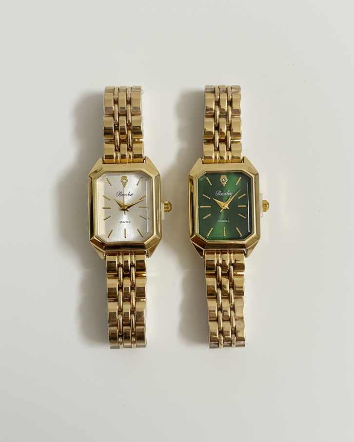 - Rounded square case for a modern-classic look